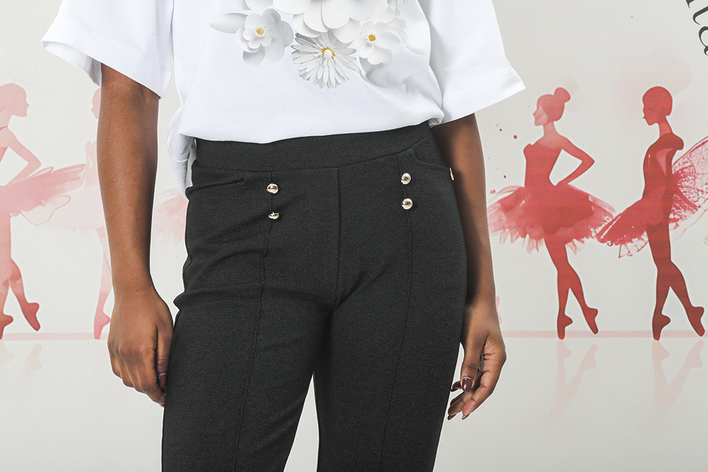Seja o primeiro a avaliar “Calça em ponto roma com botões bola dourados”