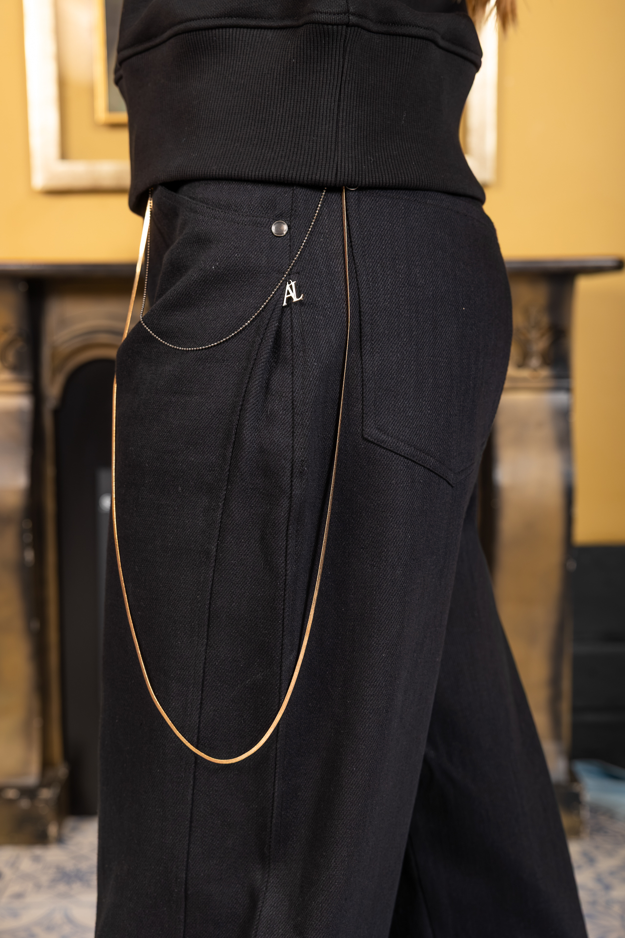 CALÇA LARGA COM CORRENTES